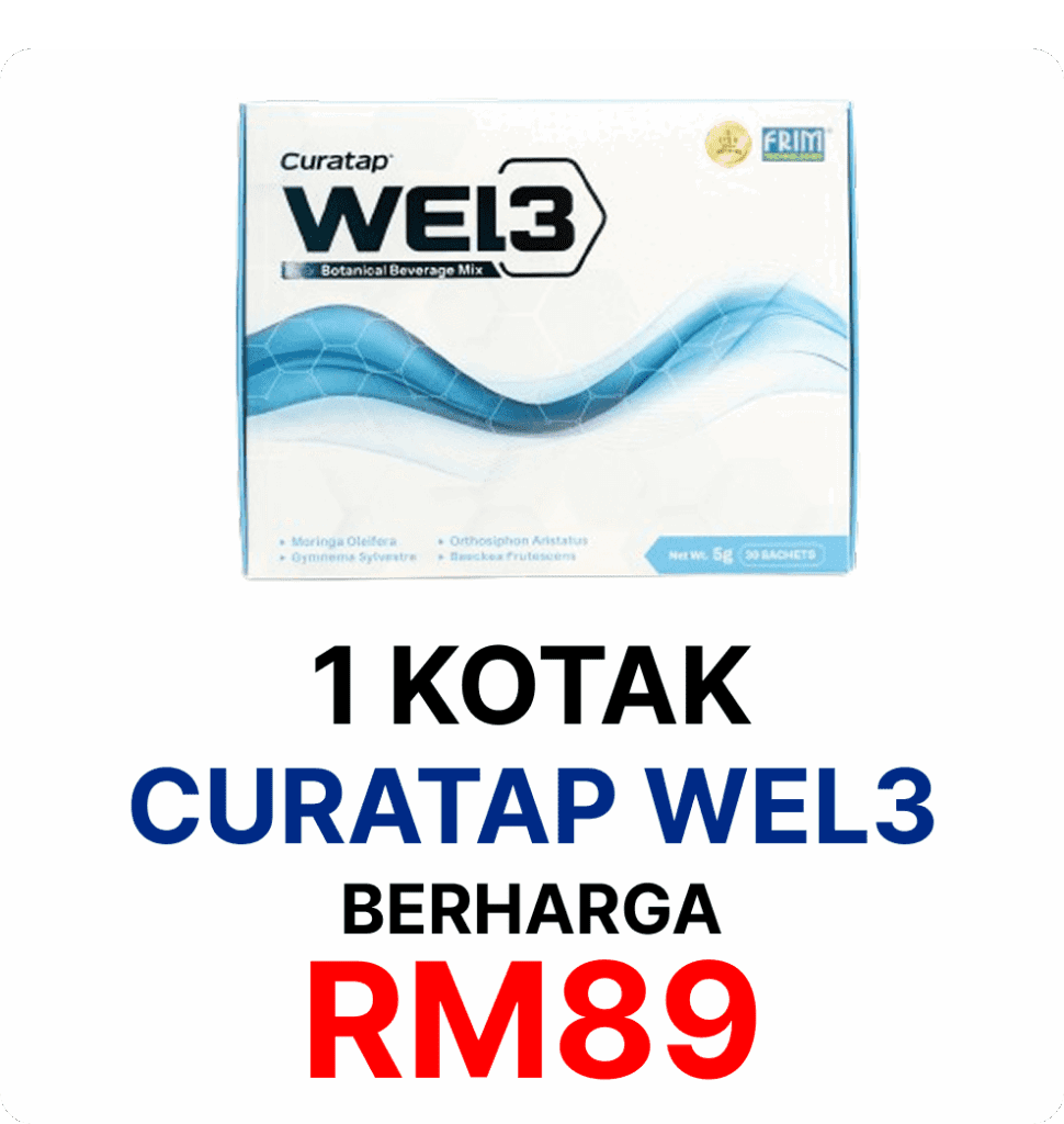 ✅ KETIGA: Ikhtiar dengan Curatap WEL3 — produk yang dah bantu ramai orang kawal gula & kurang rasa mencucuk. Guna konsisten 2–3 kotak, dan kami bantu sampai dapat hasil.